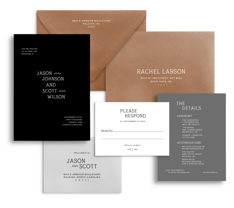 When everything is officially ready to go, you’ll be all set to mail in a breeze thanks to the step-by-step mailing guide. Postage requirements, where to shop stamps + how to properly mail your stationery at your local post office—it’s all covered in your guide to make the mailing experience super simple. We’ll be celebrating before you know it!