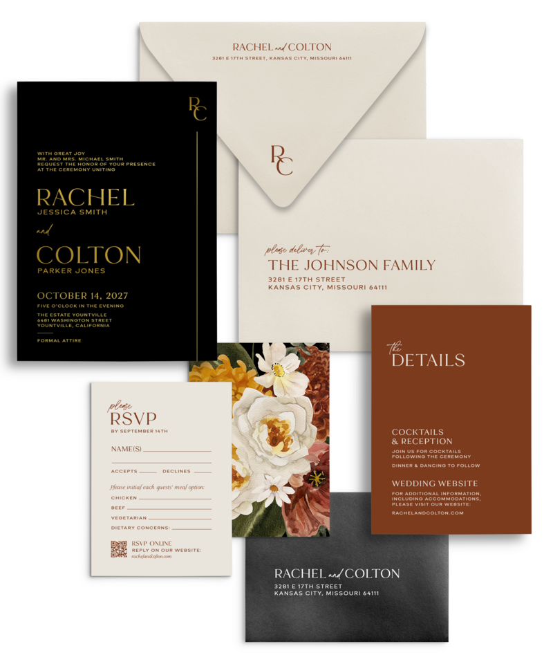 Wow your guests with a stunning, customized invitation suite that screams you. Start with the base elements + incorporate embellishments and add-ons from there.